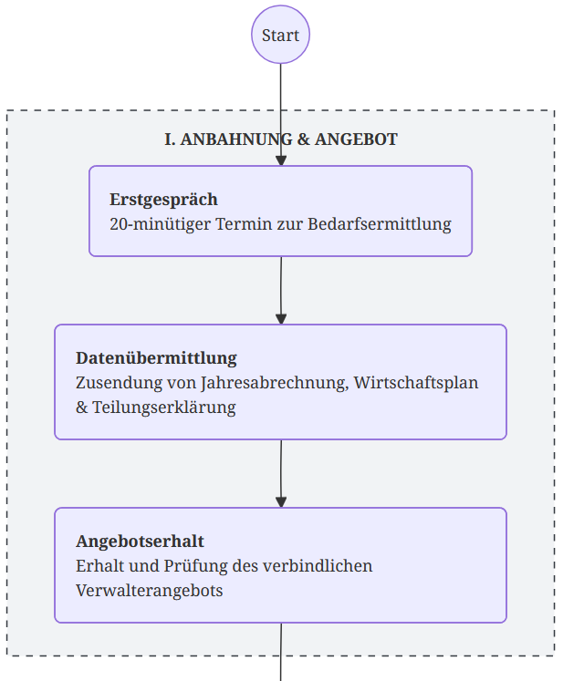 Technische Betreuung und Eigentümerversammlung sind nicht Bestandteil des Kernpakets und können nach Bedarf ergänzt oder in Eigenleistung erbracht werden.